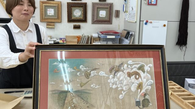 以前高山ガクブチさんにお願いしていた深堀隆介の作品、素敵な額…