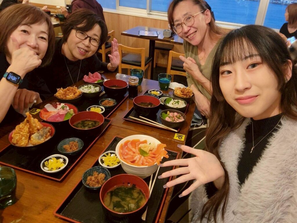 みんなで食べたマグロ、しらす、桜エビのかき揚げ丼がおいしかったー😋