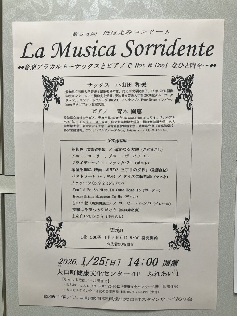 愛知県大口町でこんなコンサートに出演させていただきます。